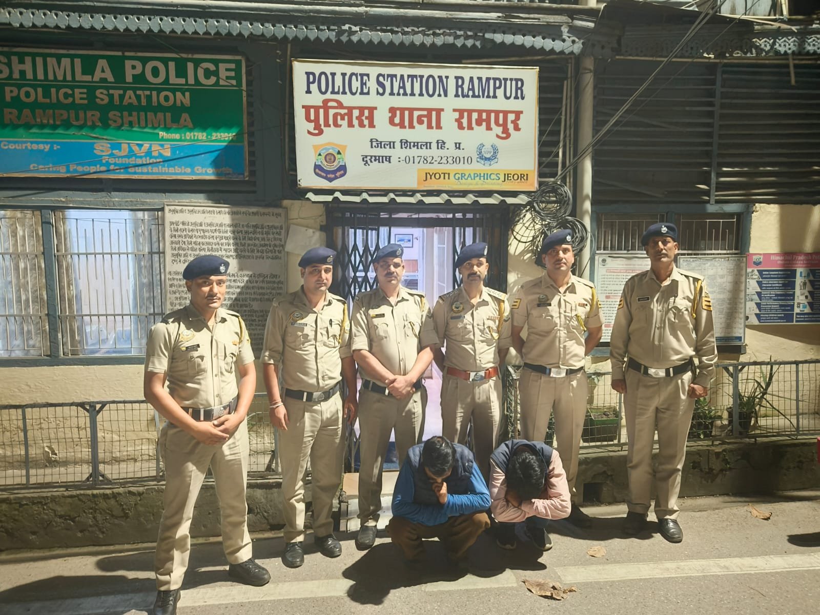 गिरफ्तार आरोपियों की पहचान 30 वर्षीय हितेश ठाकुर पुत्र प्रताप सिंह ठाकुर, निवासी गांव धार, डाकघर धार गौरा, तहसील रामपुर, जिला शिमला और, 40 वर्षी कैलाश पुत्र स्व. तेलू राम, निवासी गांव कोटी, डाकघर धार गौरा, तहसील रामपुर, जिला शिमला के रूप में हुई है। पुलिस ने हितेश से 17.33 ग्राम और कैलाश से 22.75 ग्राम चिट्टा/हेरोइन जब्त की। दोनों आरोपियों के खिलाफ एनडीपीएस एक्ट के तहत मामला दर्ज कर उन्हें गिरफ्तार कर लिया गया है।